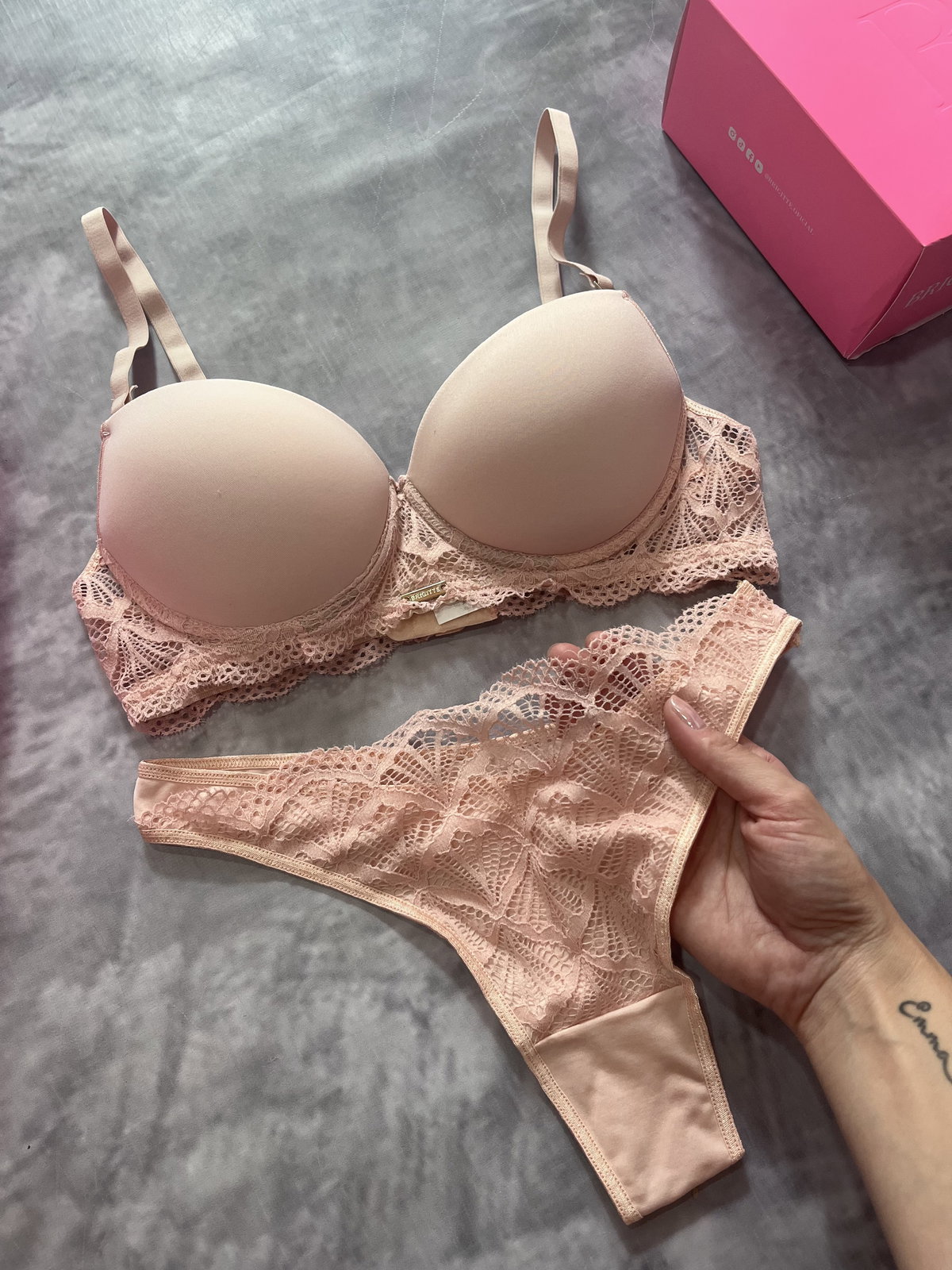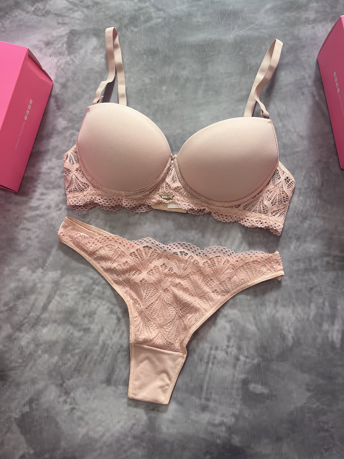 Conjunto de BRIGITTE corpiño con efecto push up y less (microfibra y encaje)