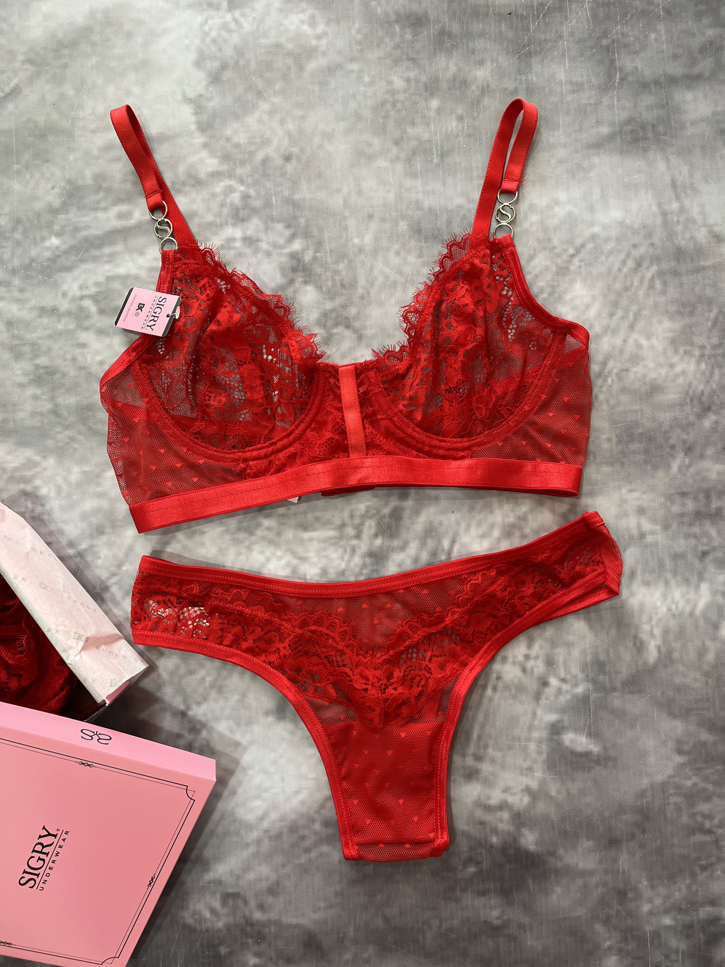 SIGRY corpiño bralatte con aro y less tiro medio (ENCAJE Y TUL)