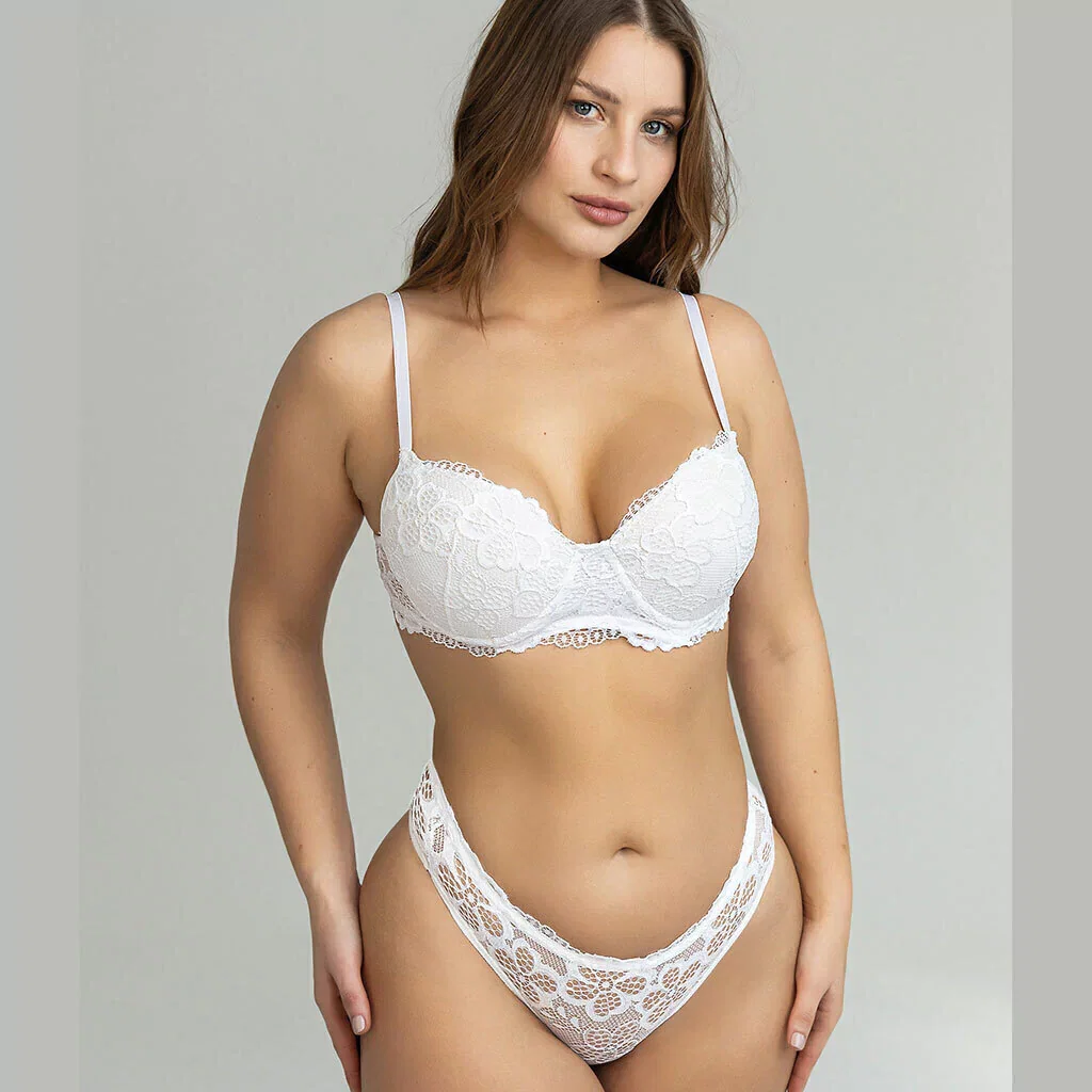 conjunto de taza soft de puntilla con base (sin efecto push up) y colaless tiro alto
