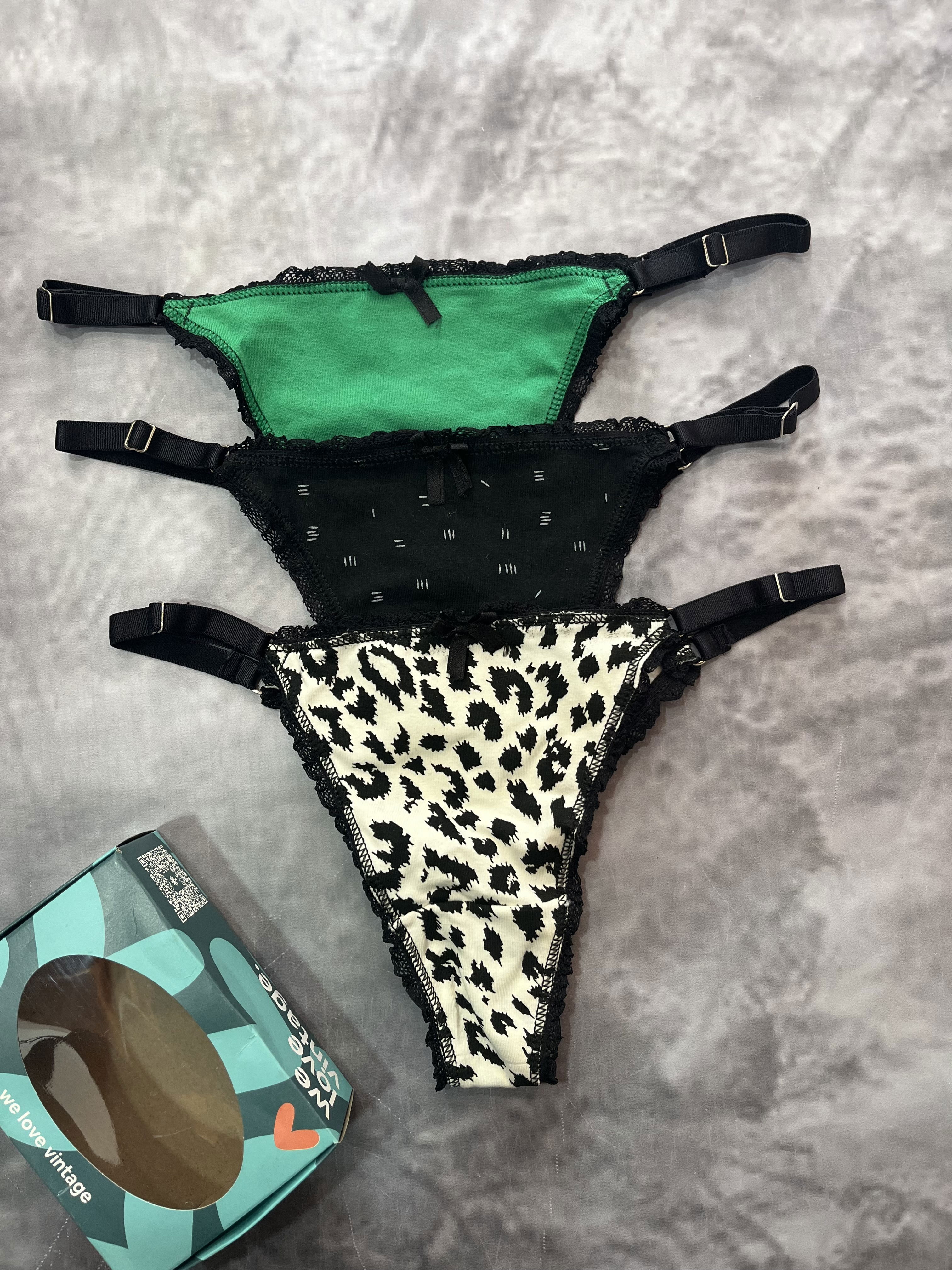 Pack x3 de less regulables de algodón y puntilla VINTAGE