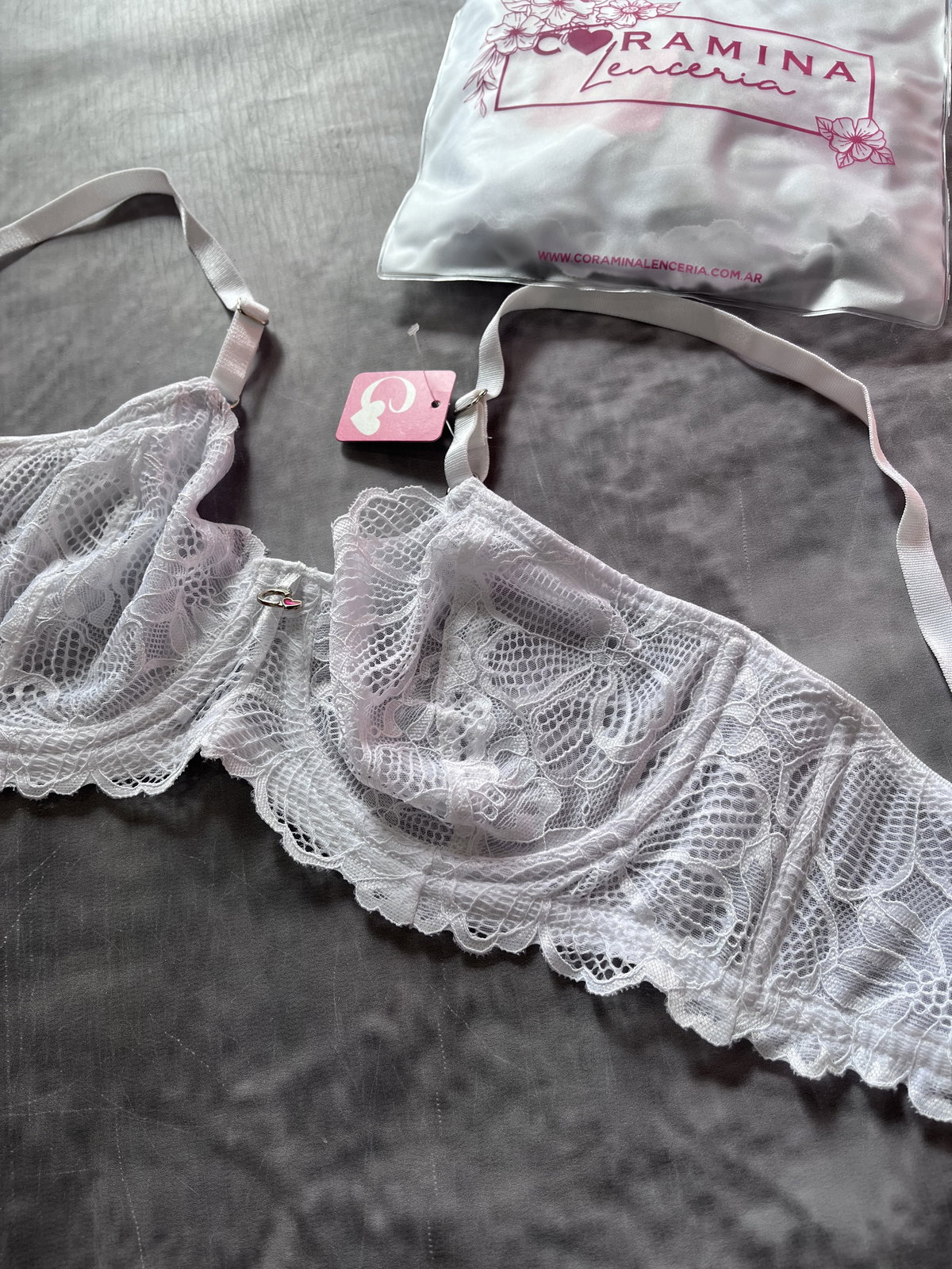 CORAMINA corpiño con aro y calce profundo,doble tela microfibra y encaje