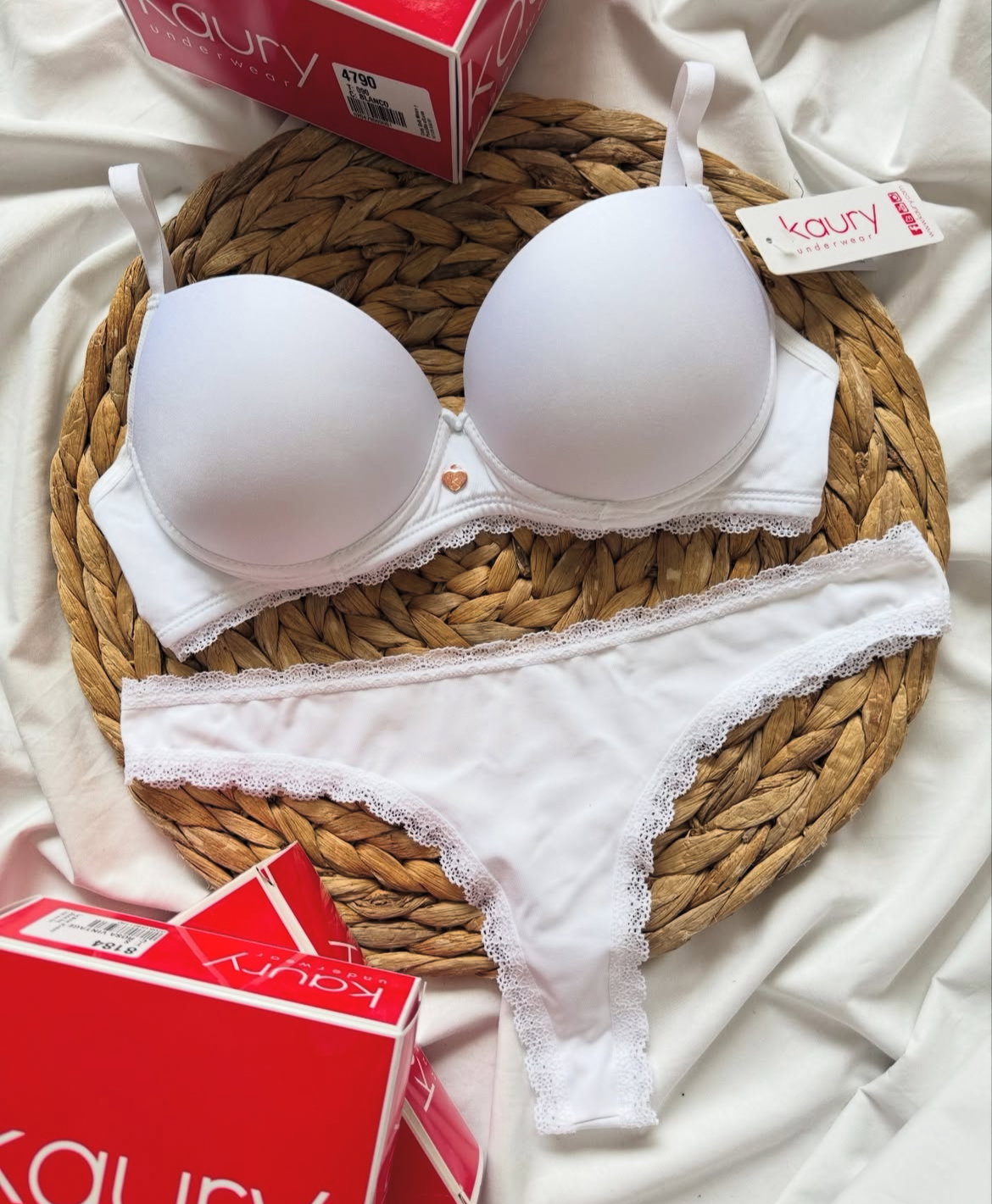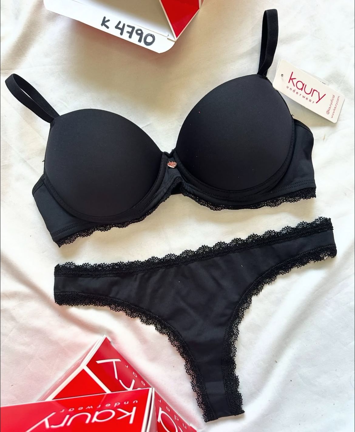 Descubre el Conjunto Kaury 4790, ideal para quienes buscan un equilibrio perfecto entre sensualidad y comodidad. Este conjunto incluye un corpiño taza soft con push up y una cola less, ambos confeccionados en microfibra y puntilla de alta calidad, lo que asegura una prenda suave y elegante que realza tu figura.
