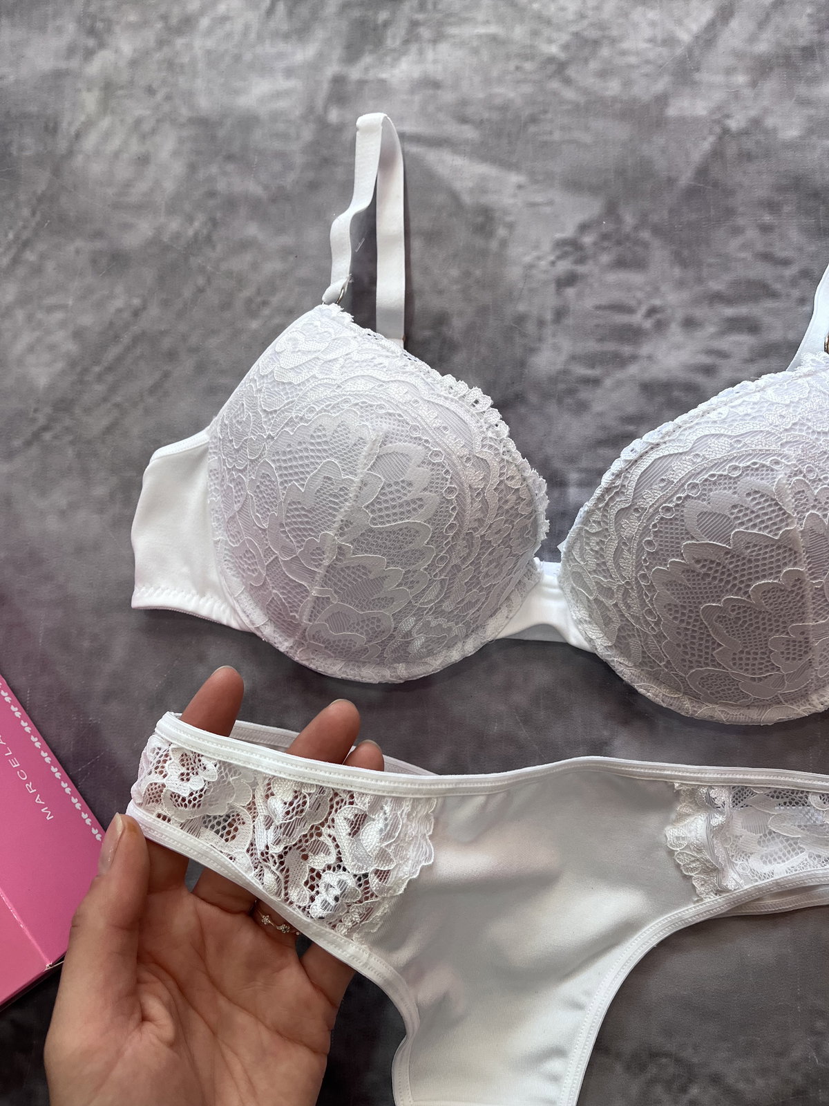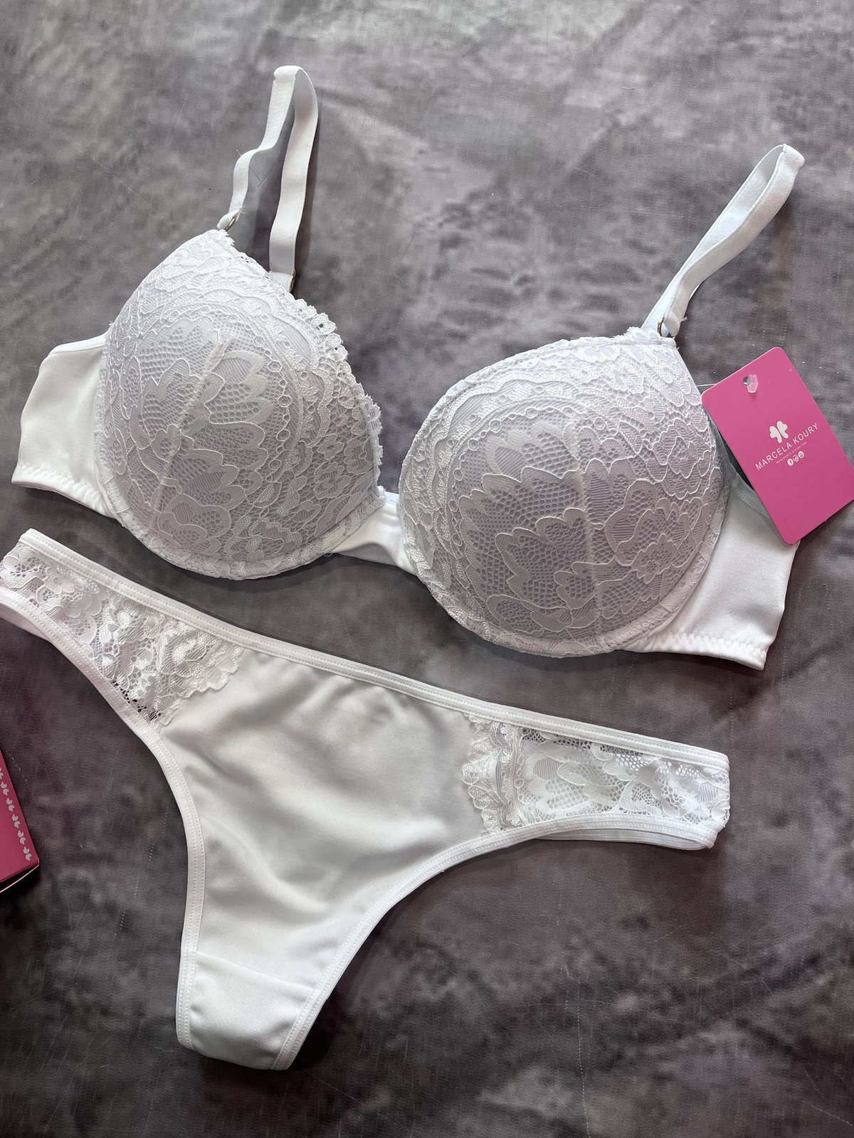 Conjunto chloe de encaje y microfibra taza soft push up y colaless. MARCELA KOURY