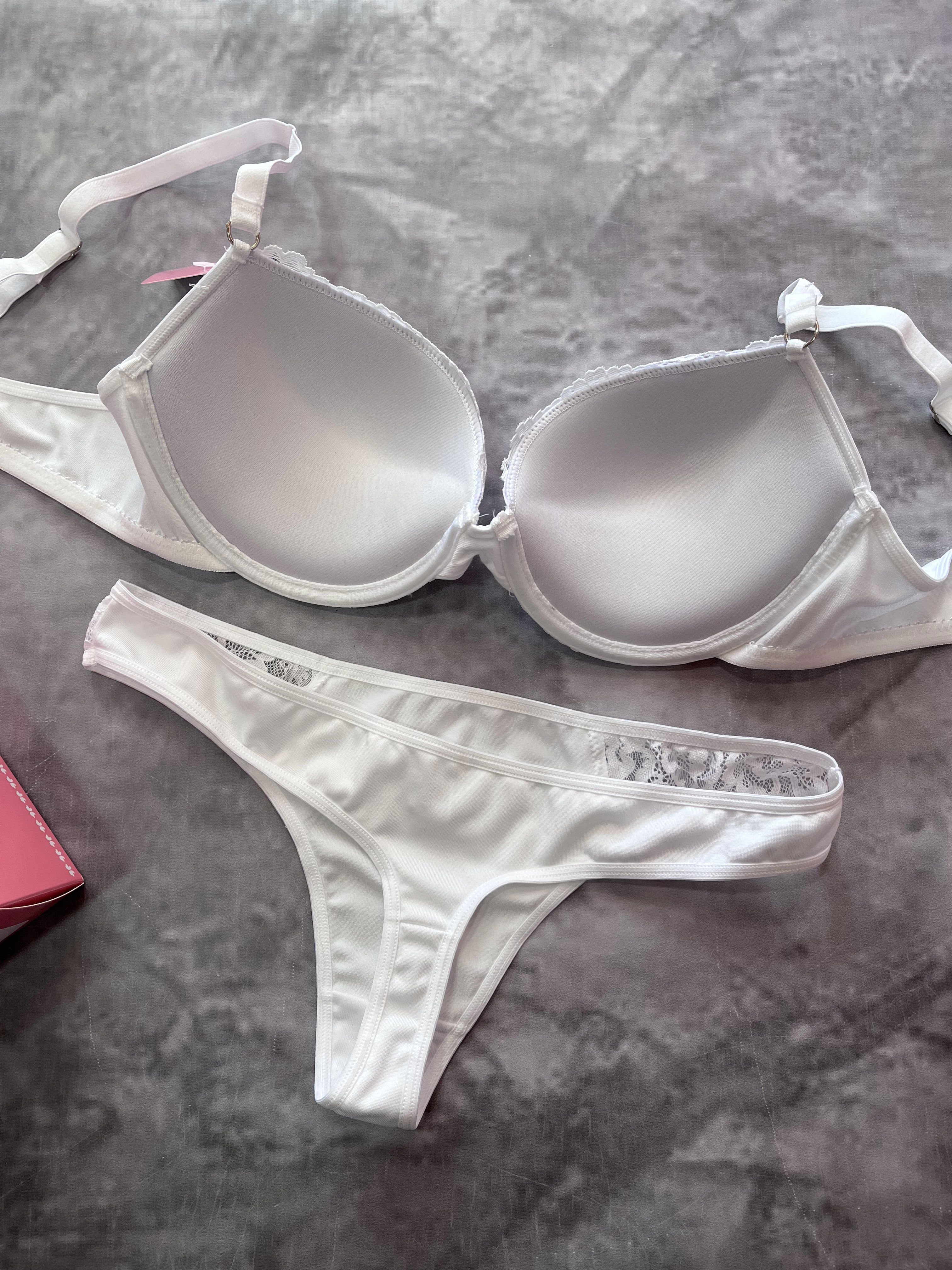 Conjunto chloe de encaje y microfibra taza soft push up y colaless. MARCELA KOURY
