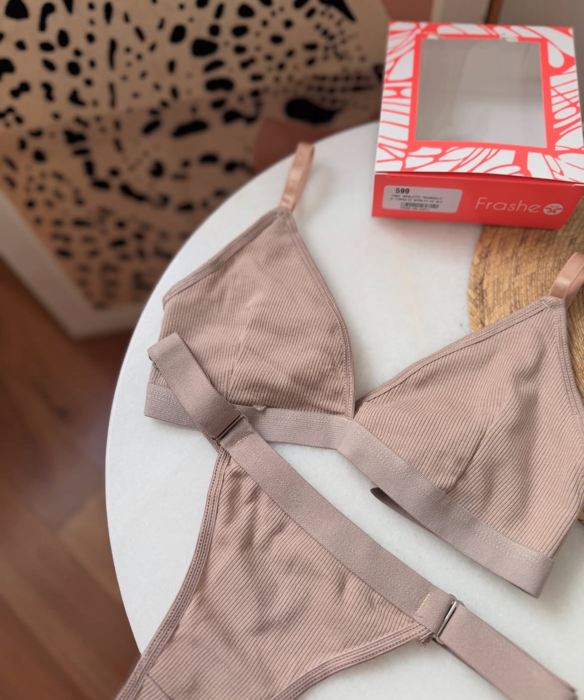 Descubrí el equilibrio perfecto entre comodidad y estilo con el Conjunto Bralette Triángulo con Tanga de Morley de Algodón Frashe Art 599, ideal para realzar tu día a día. Su confección en morley de algodón proporciona una textura suave y fresca, asegurando bienestar en cada movimiento.