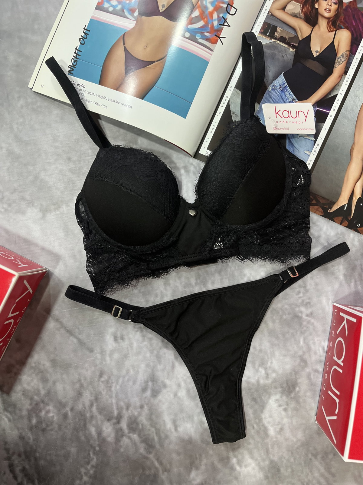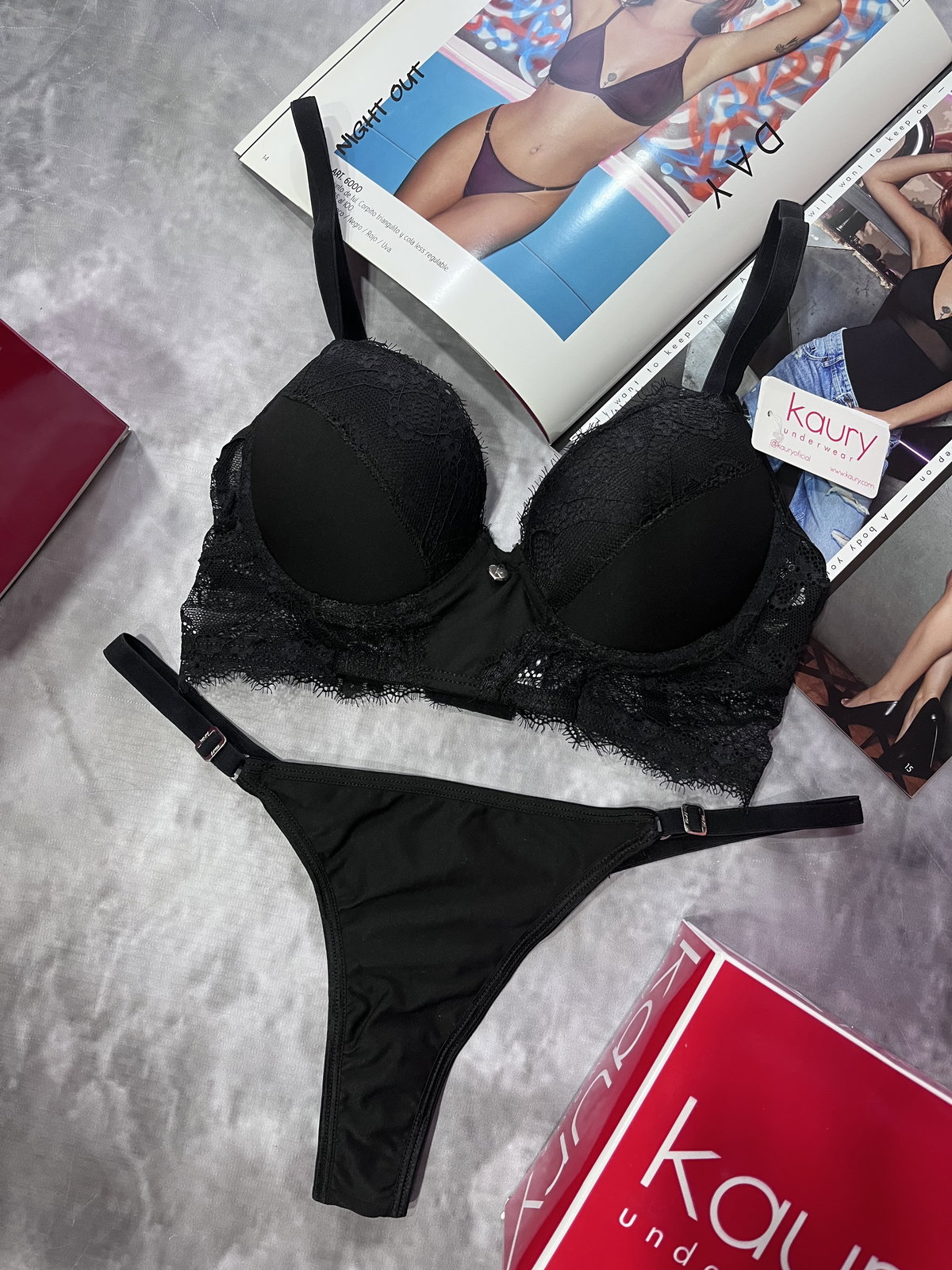 conjunto de microfibra y puntilla, corpiño con taza soft con oush uo y colaless regulable