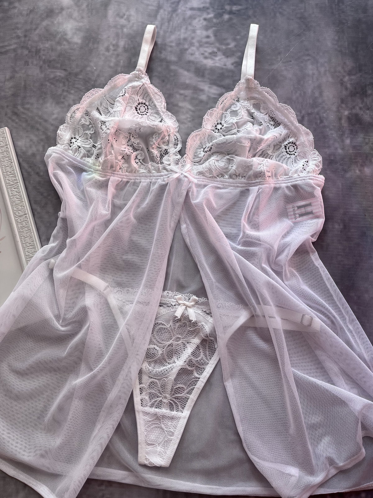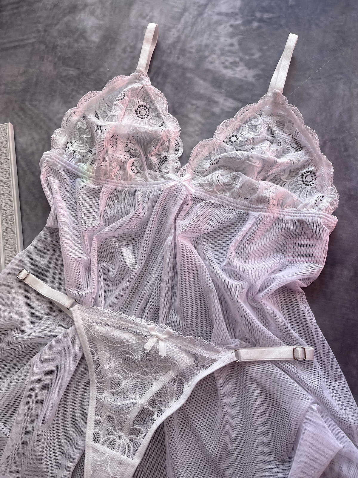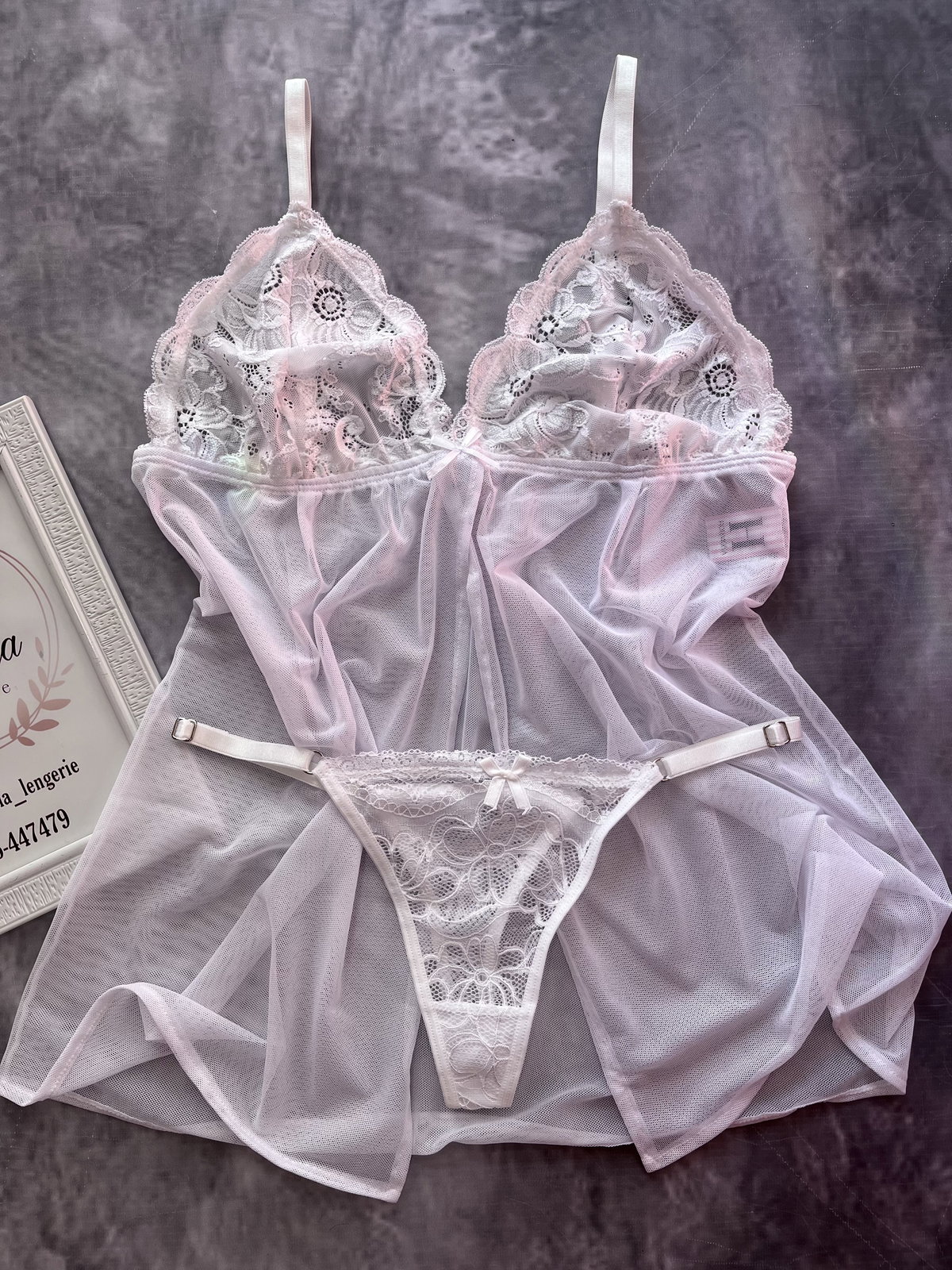 Camisolín de encaja con tul,corpiño triangulo y less regulable (C/ABERTURA DELANTERA)