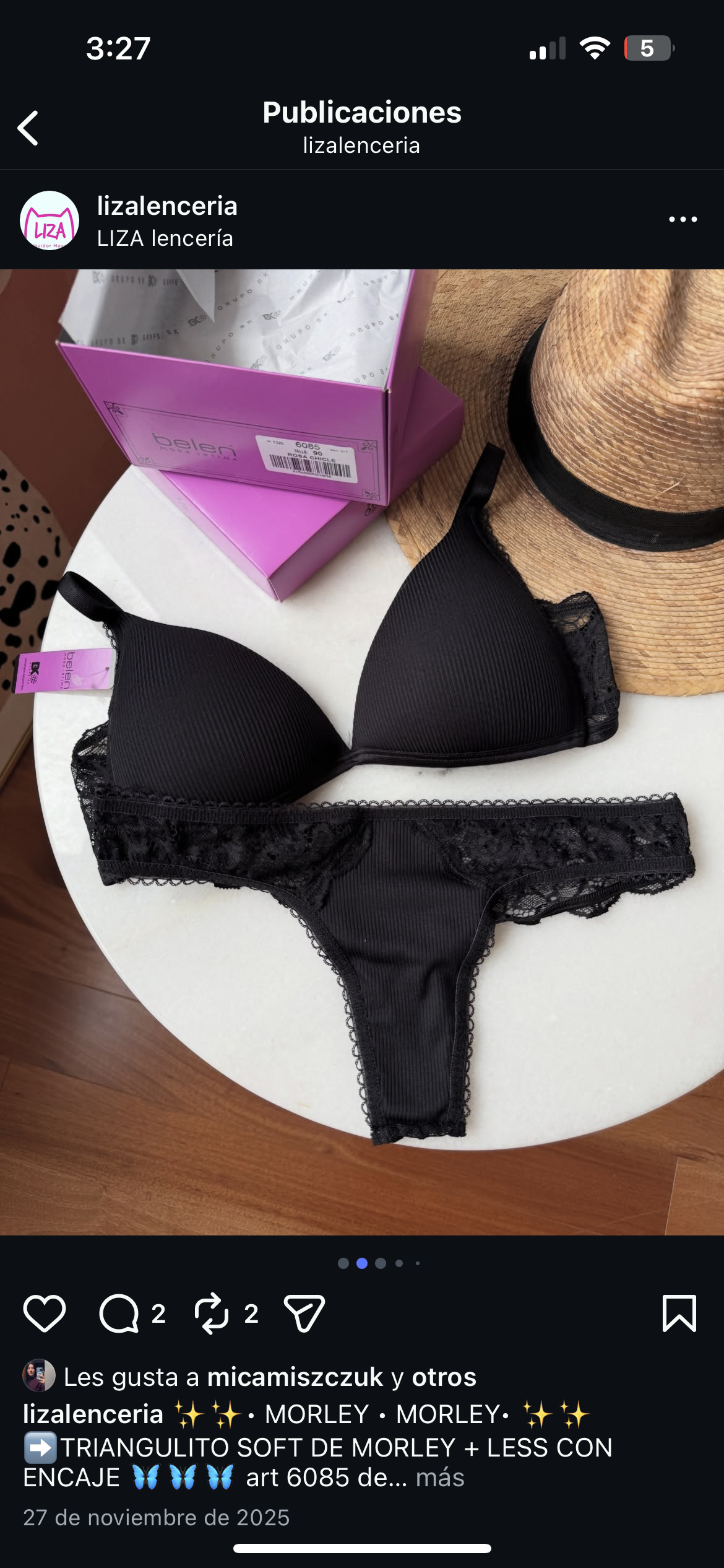 Descubre el Conjunto Belen 6085, una combinación perfecta de comodidad y estilo. Este set incluye un corpiño triángulo soft sin push up y una colaless, ambos confeccionados en morley y delicada puntilla.