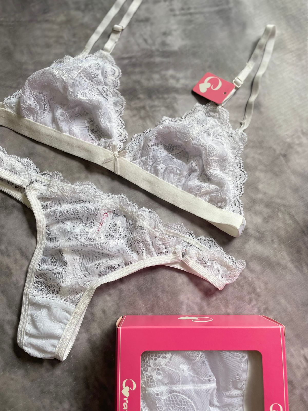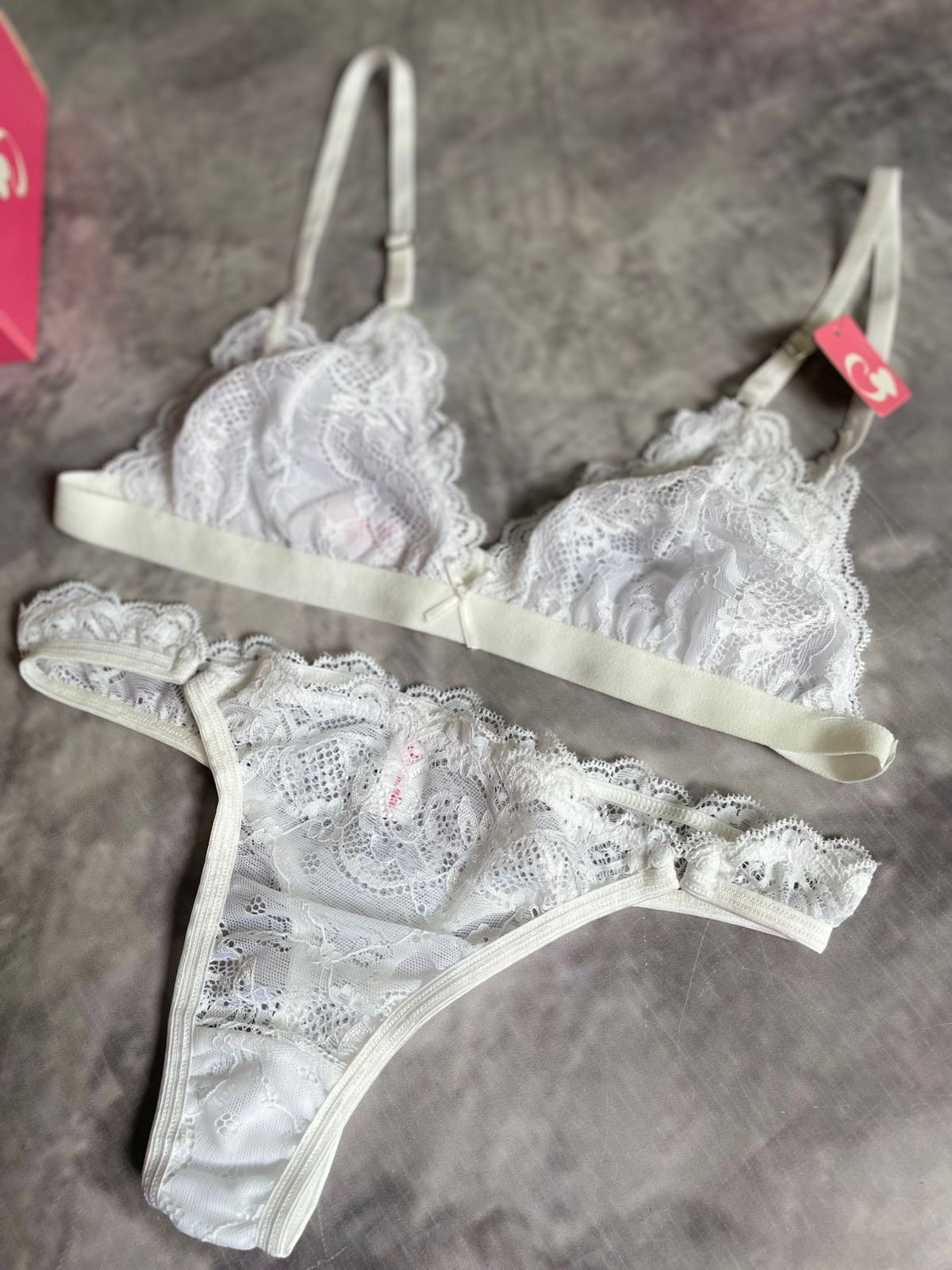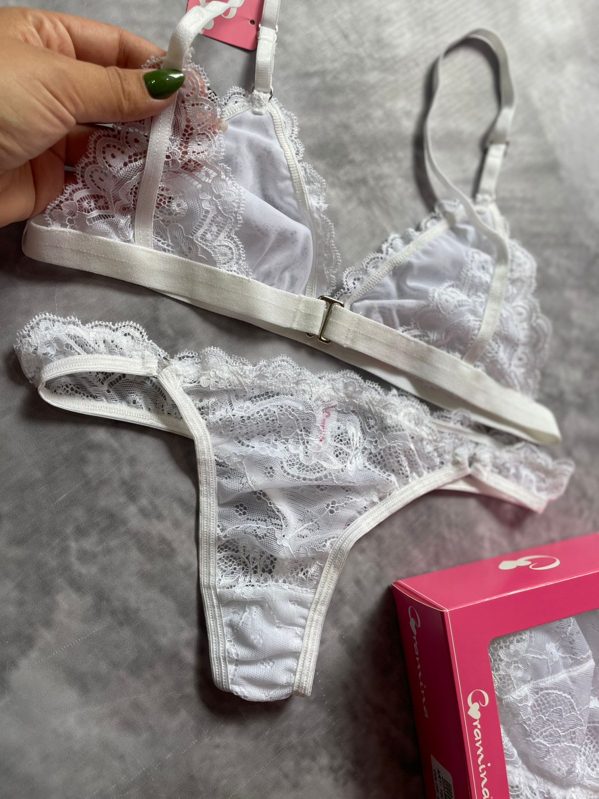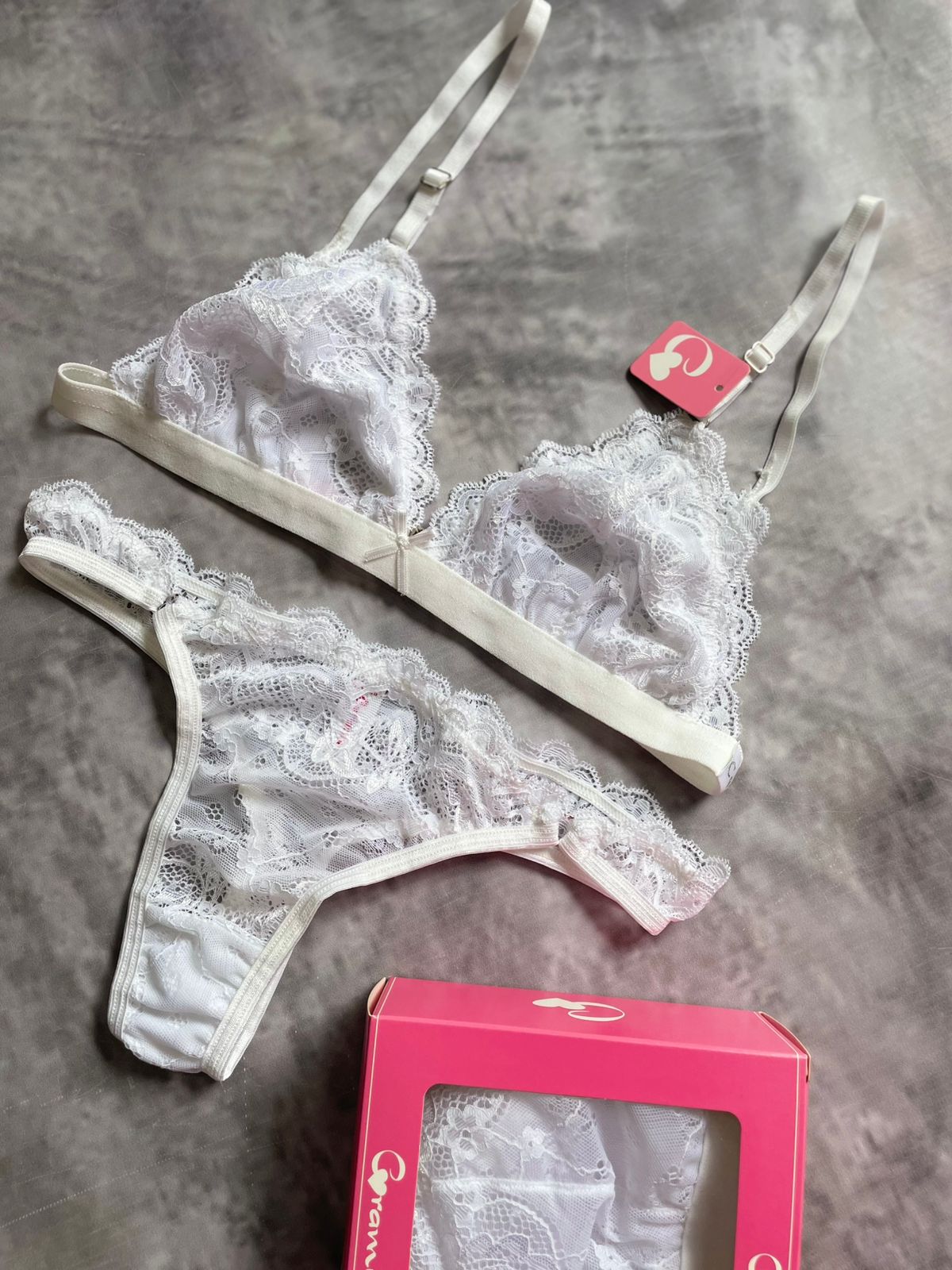 Conjunto de encaje y puntilla, corpiño triangulo y less CORAMINA 180