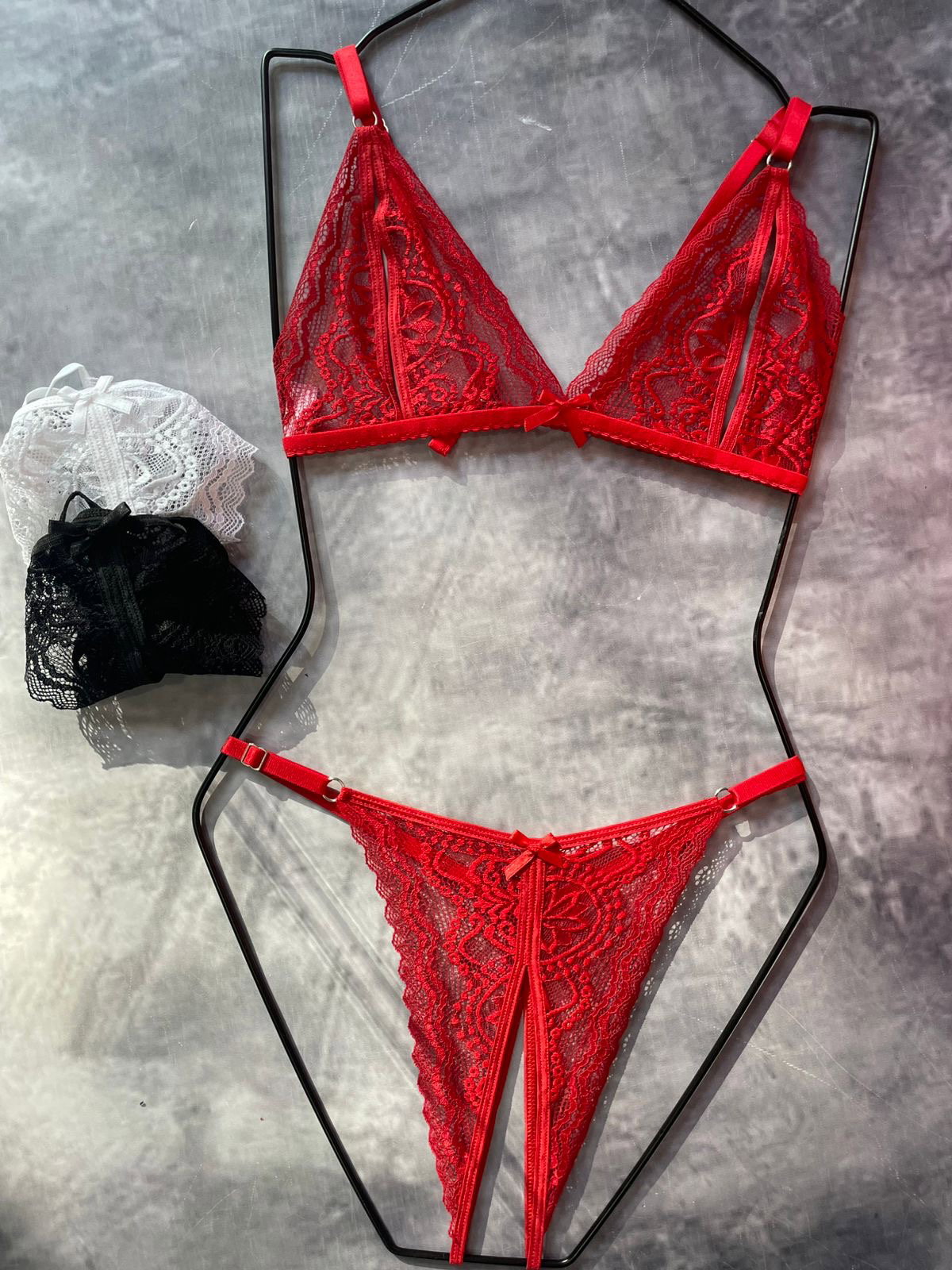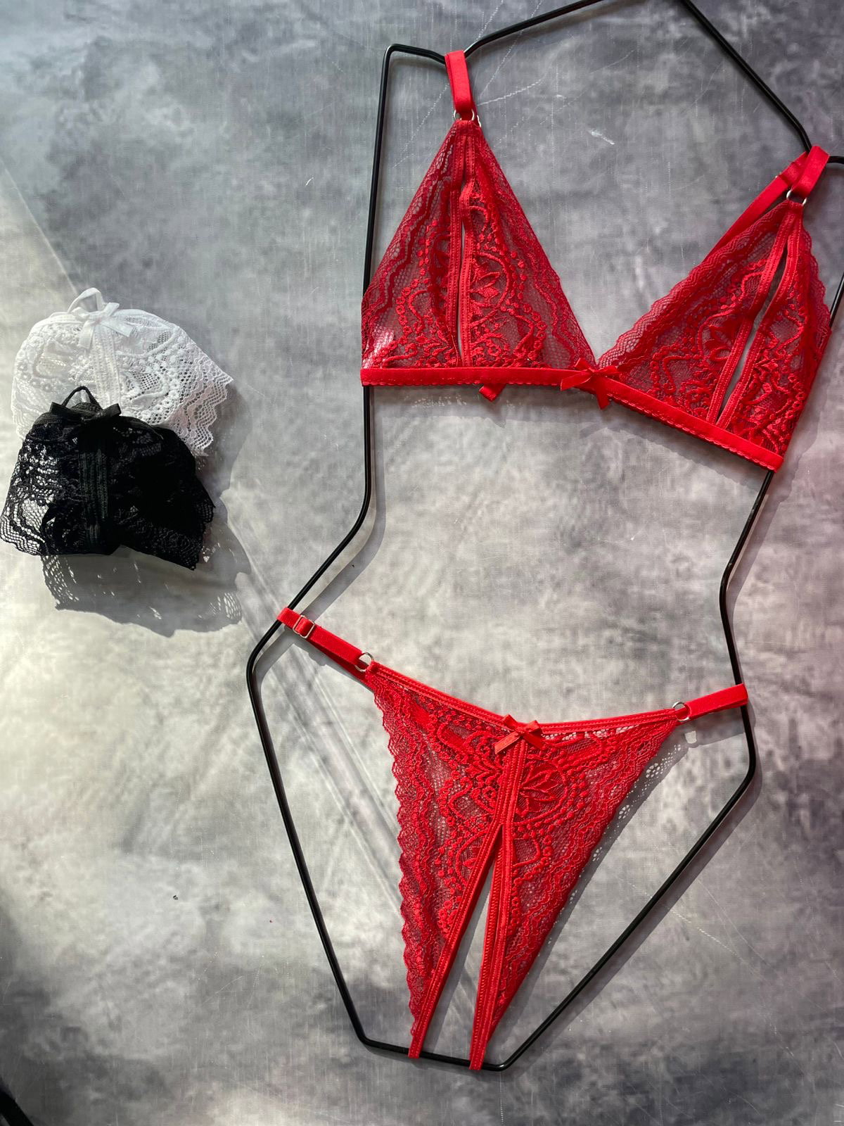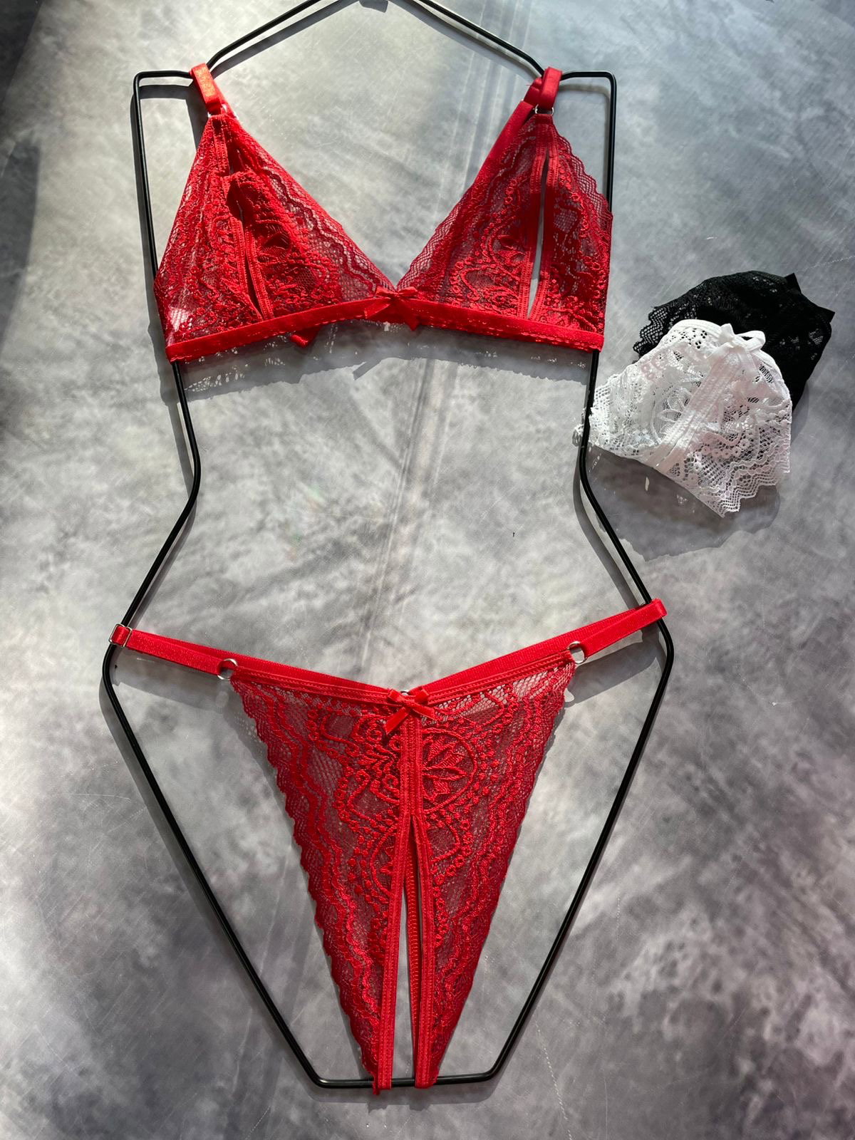 Conjunto RUTERO,corpiño triangulo y less regulables/ambos c/ abertura 969
