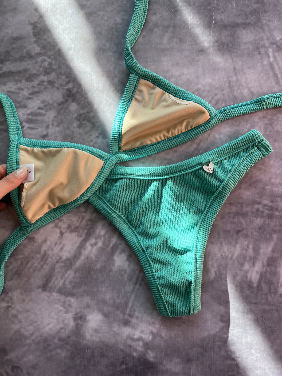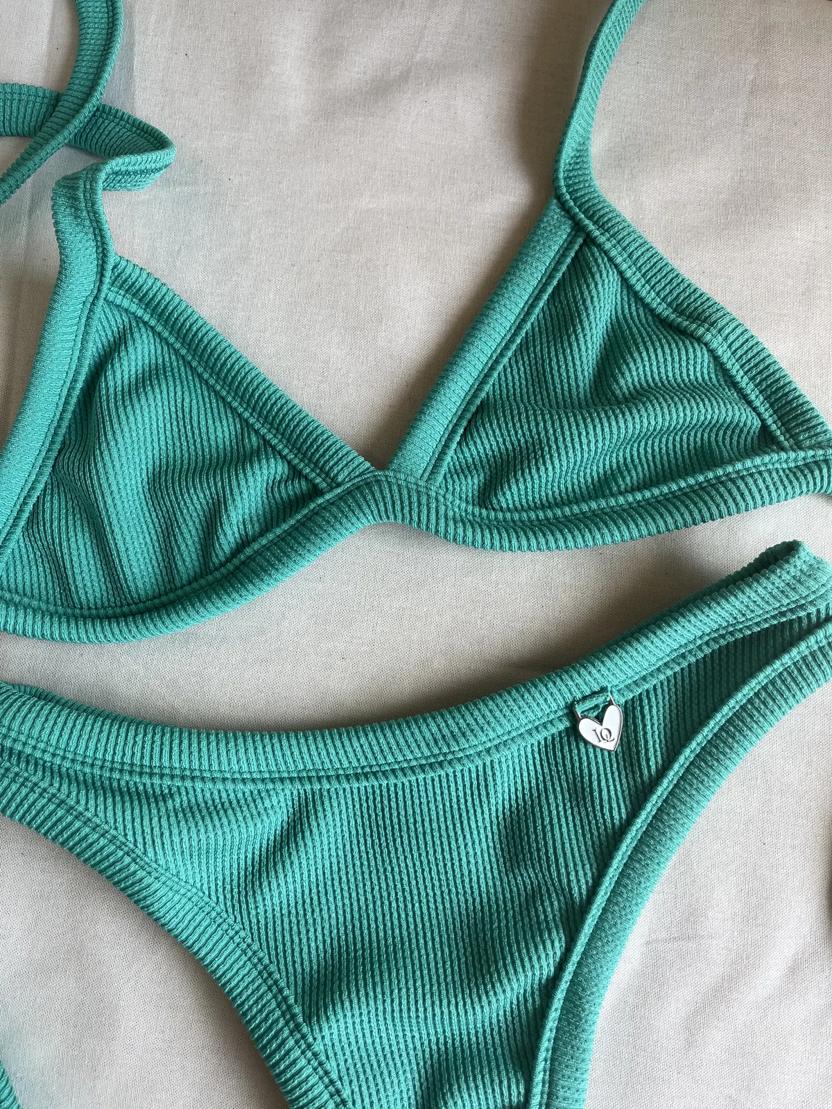 Triángulo con tiras para atar y colaless entera. El corpiño NO TRAE tazas desmontables pero TIENE ABERTURA PARA AGREGARLE. es una de las bikinis más elegidas por su comodidad y sostén !