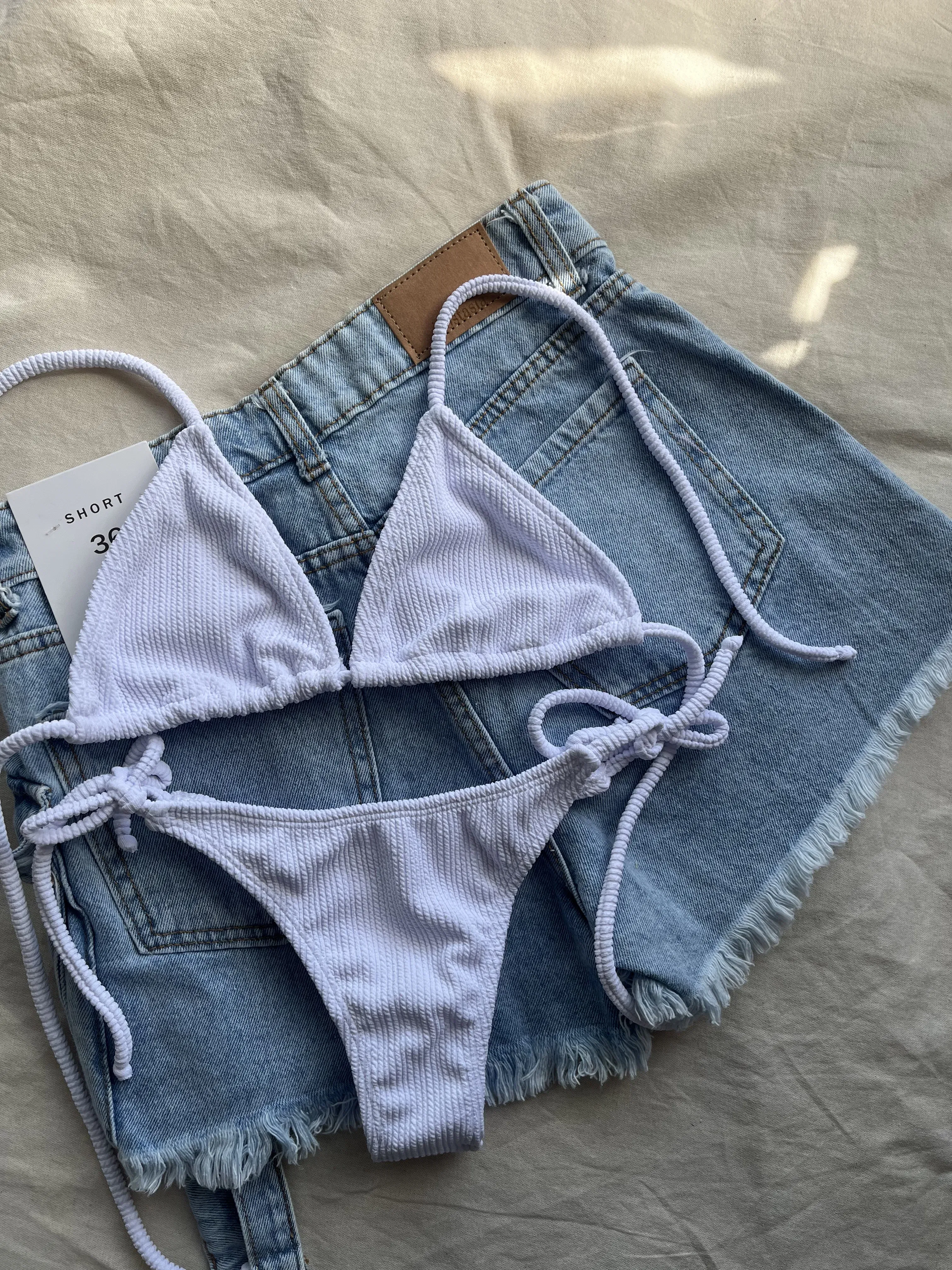 Corpiño triangulo con bolsillo para ponerle tazas y colaless para atar