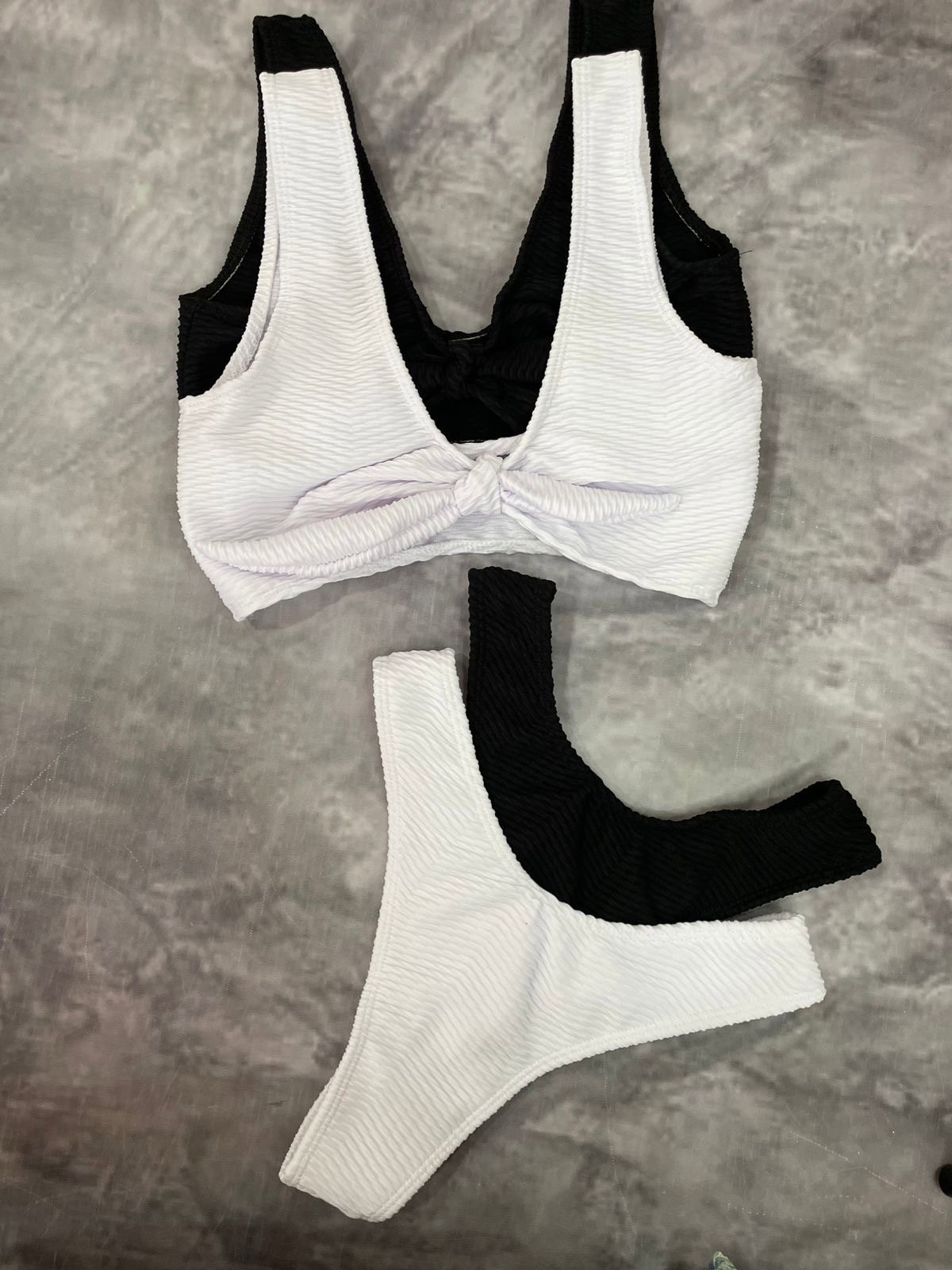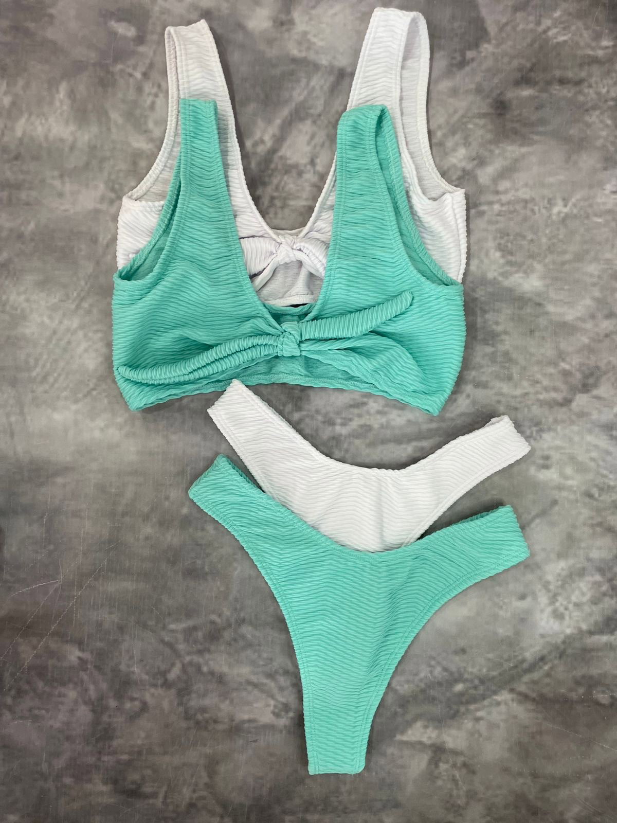 Bikini con textura,top con moño desmontable y less FRIDA