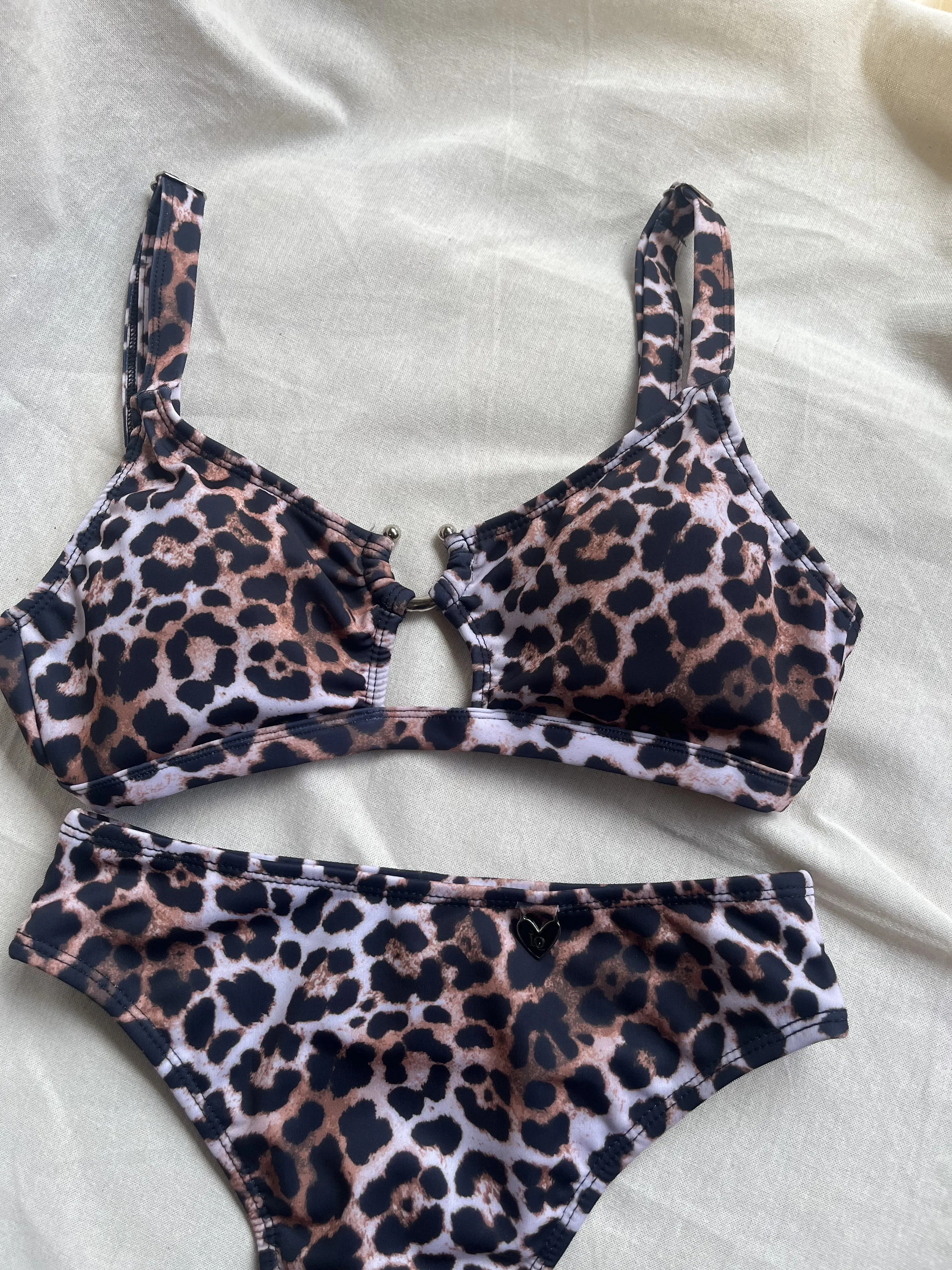Top con herraje, breteles regulables y espalda para atar. Colaless tiro alto