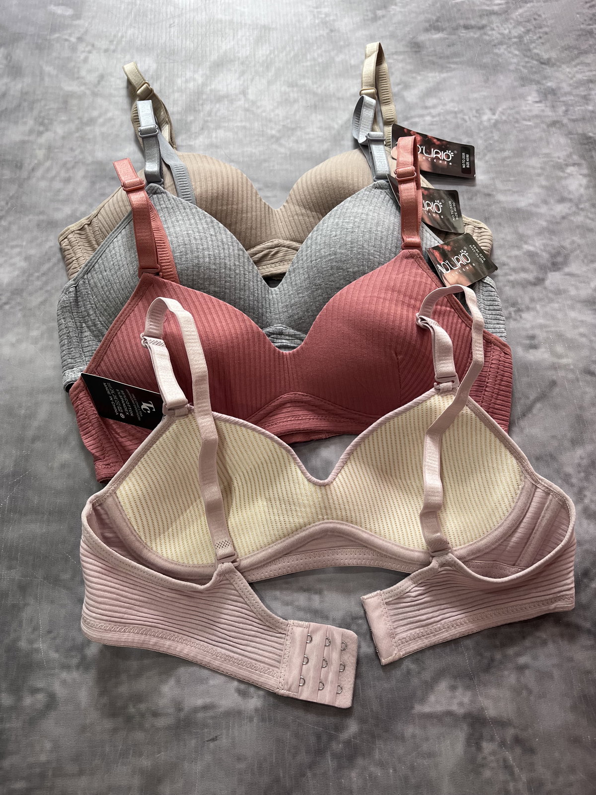 Corpiño con tazas (breteles regulables, con avíos plásticos, broches en la espalda)