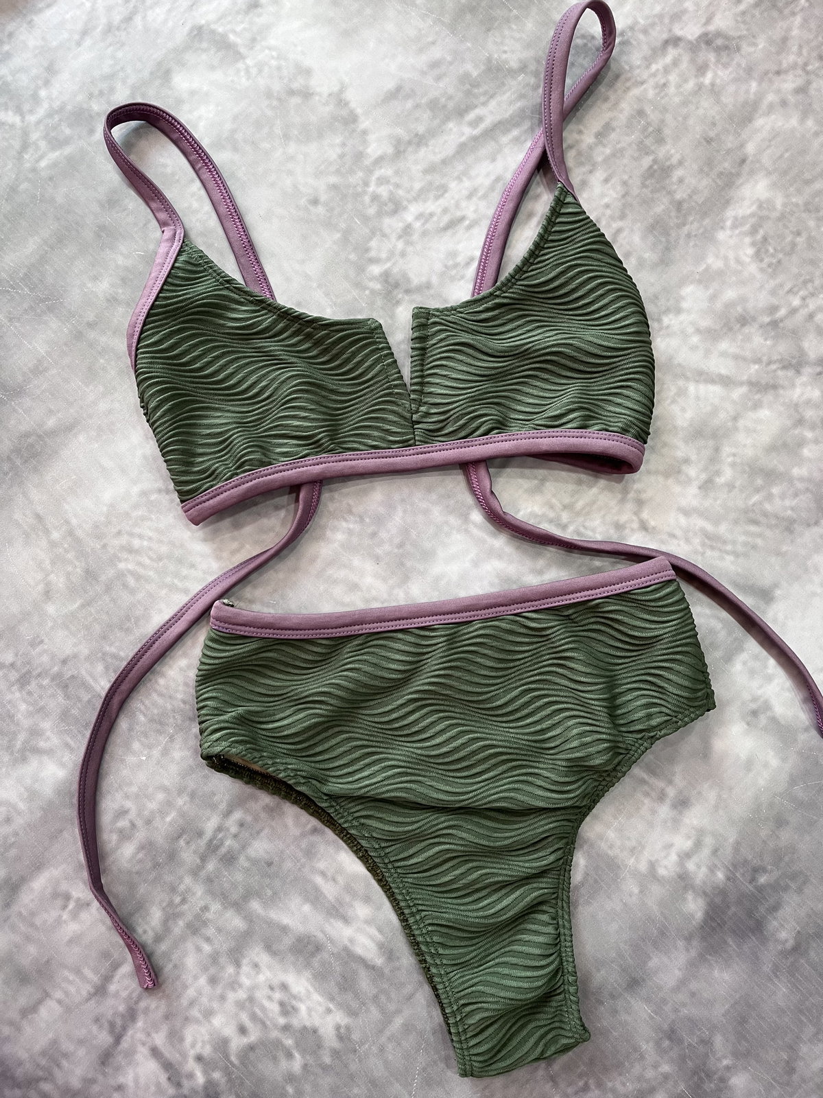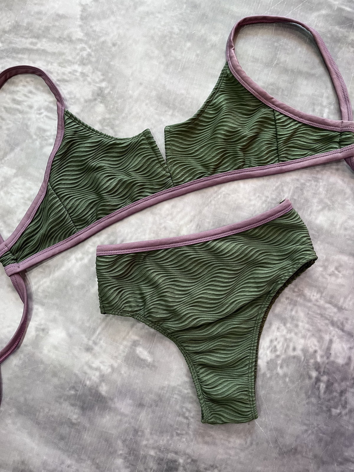 Bikini ANTICA,tipo top con ballena en V en el centro del busto y colaless tiro alto