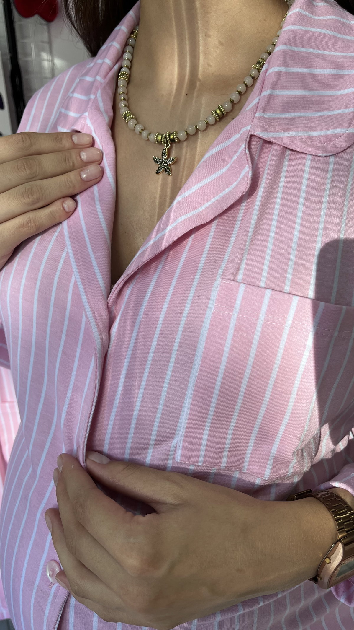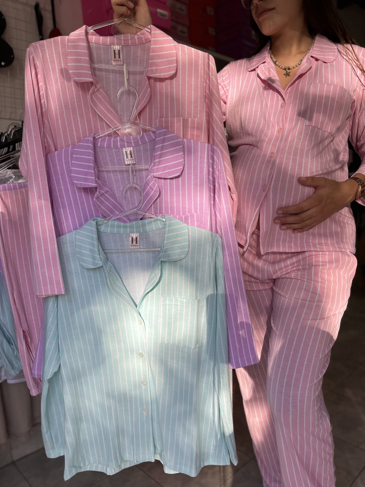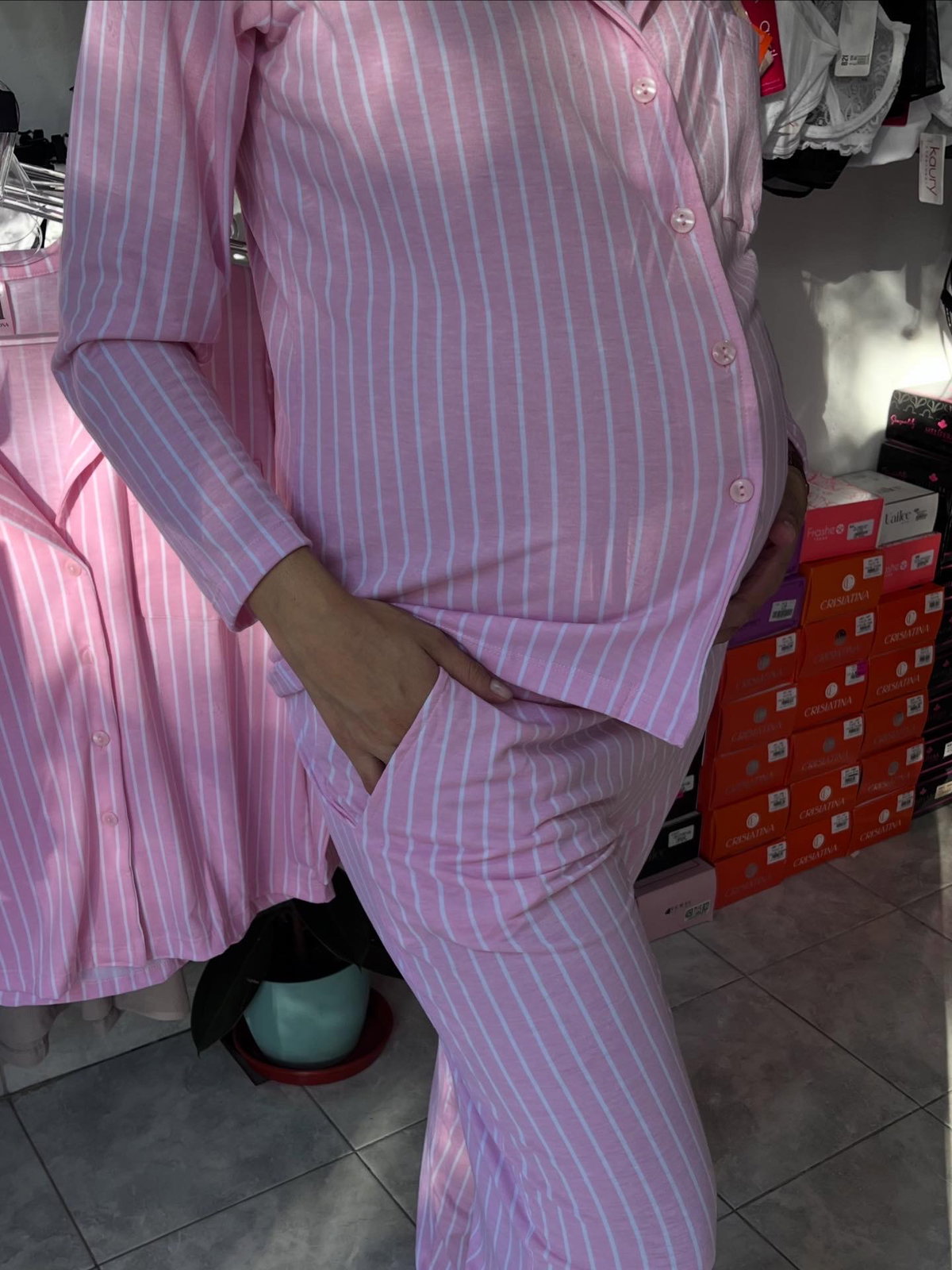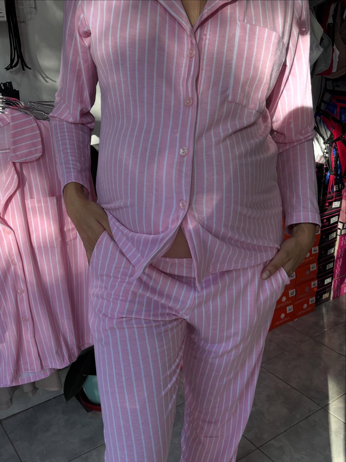 Pijama camisero con botones y pantalón a tono con bolsillos HORMONA